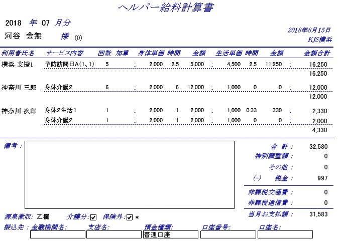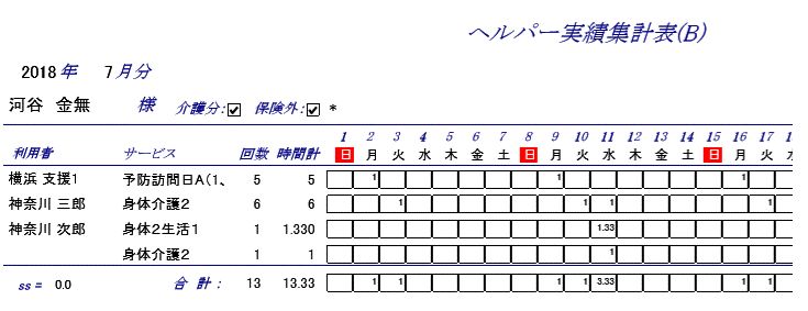 ヘルパー: ヘルパー管理データーの登録、スケジュール表、活動記録書の作成、給料計算