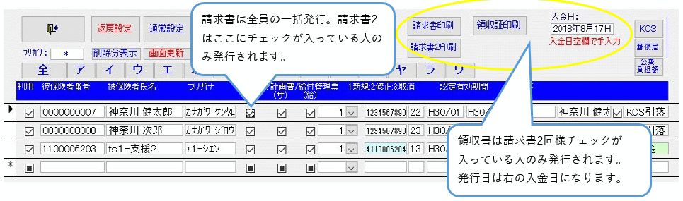 請求処理: 国保請求データー作成作業、利用者請求書、領収書、銀行振替管理データーの作成