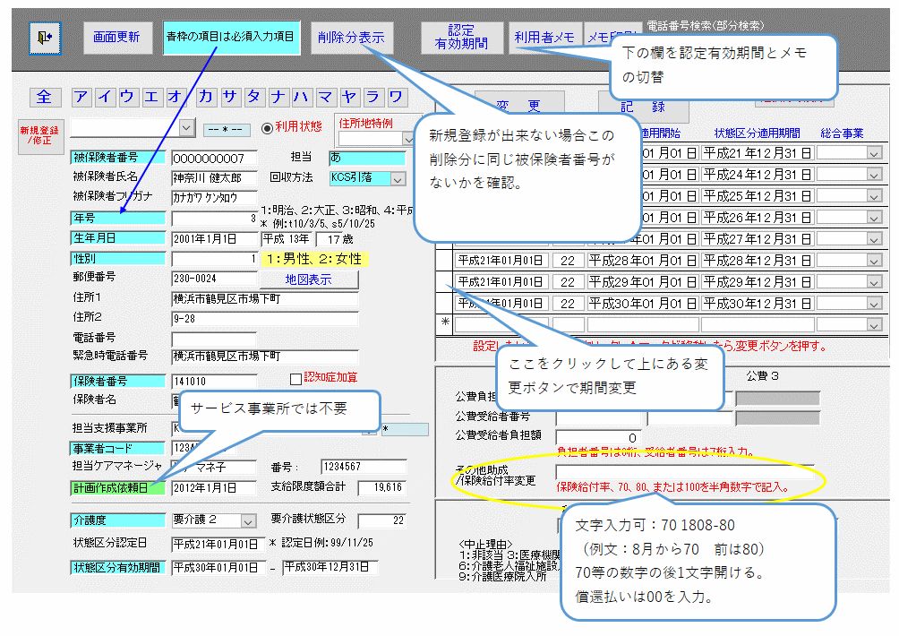 サービス計画の入力 (総合事業用は別画面、操作は同様)