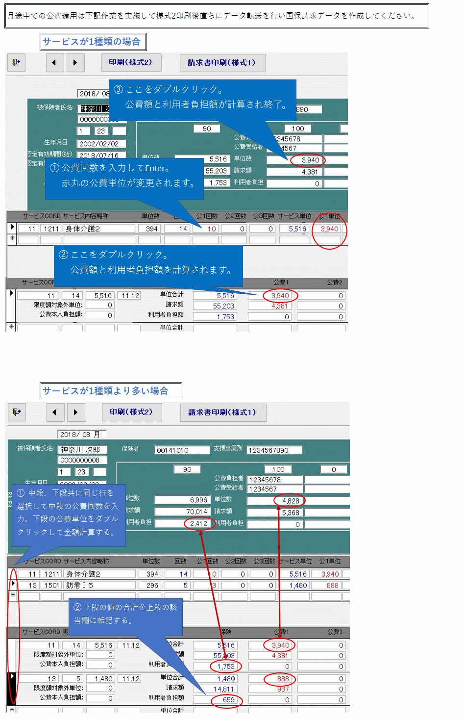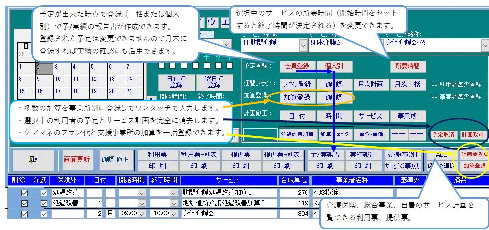 追加説明: 通所介護は通所日を登録、実日数のカウントのため必ず入力。